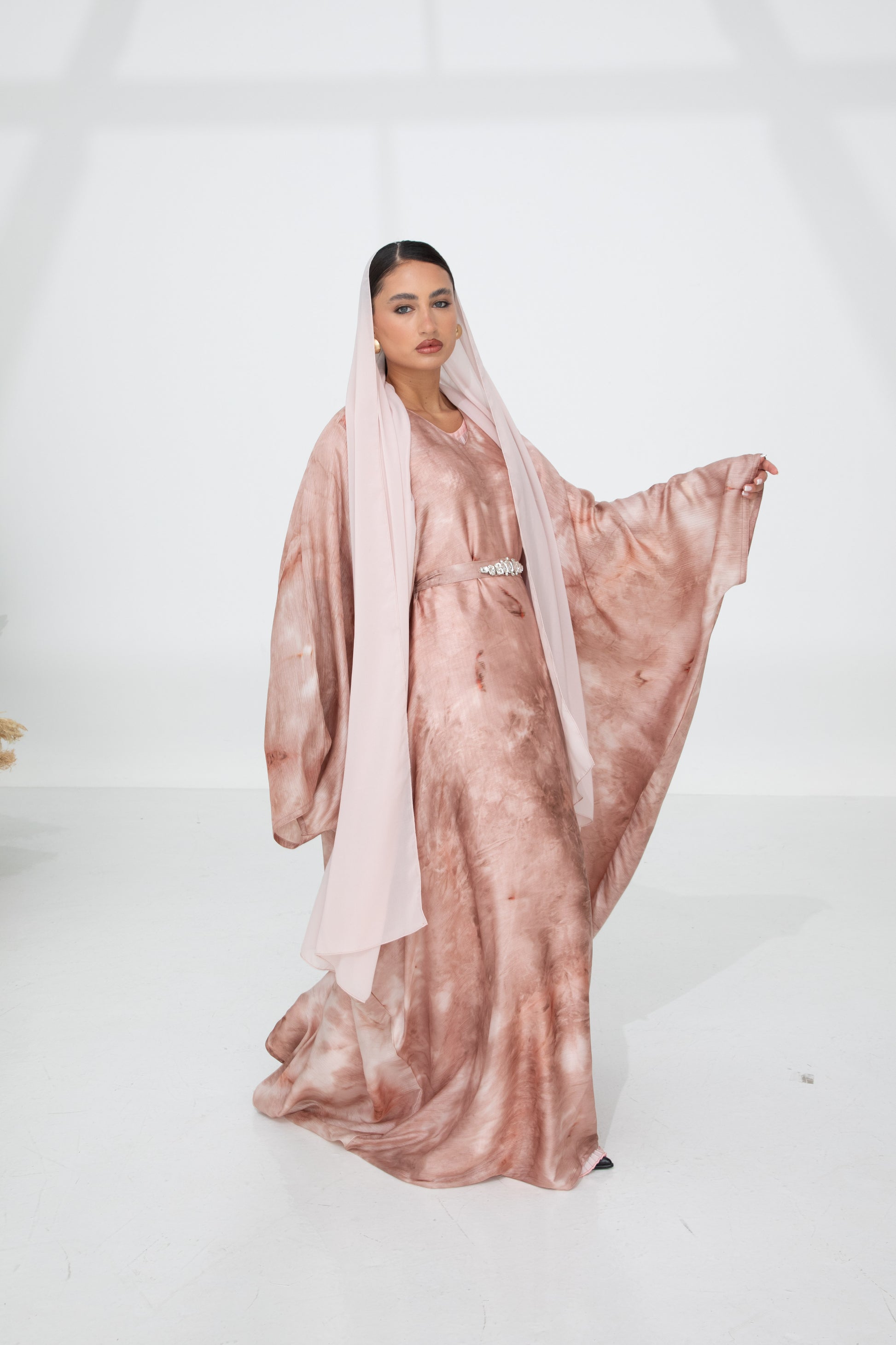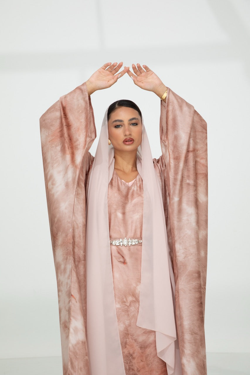 Earth-toned Butterfly abaya set embodying elegance and natural beauty.