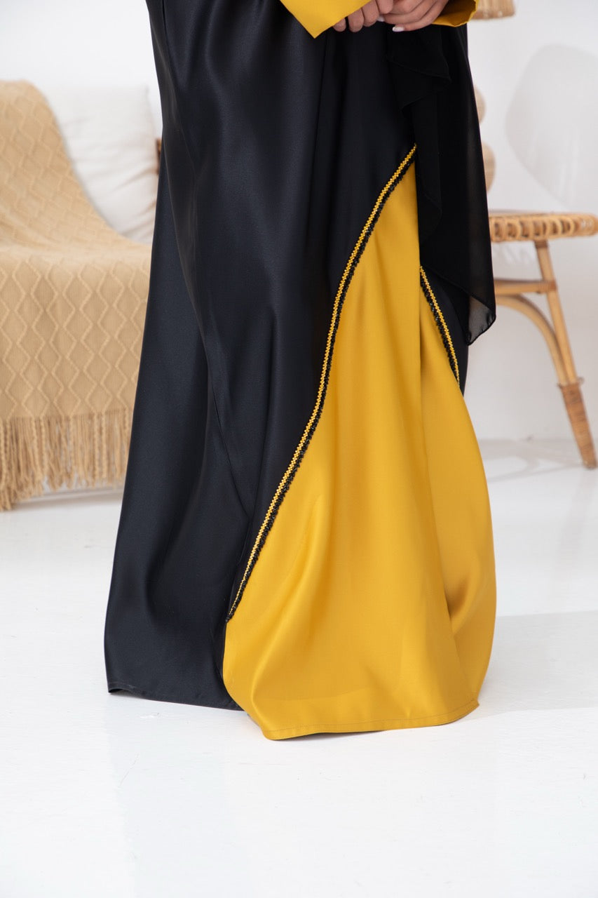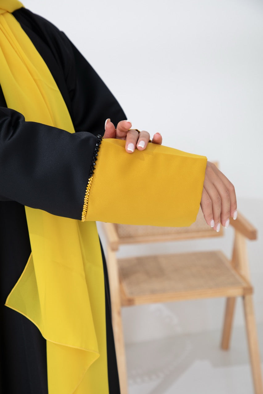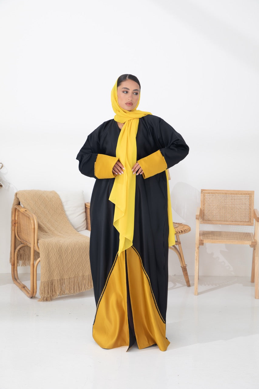 Evoking warmth, emotion, and sentimentality with our bridal satin abaya with stoned handwork.
